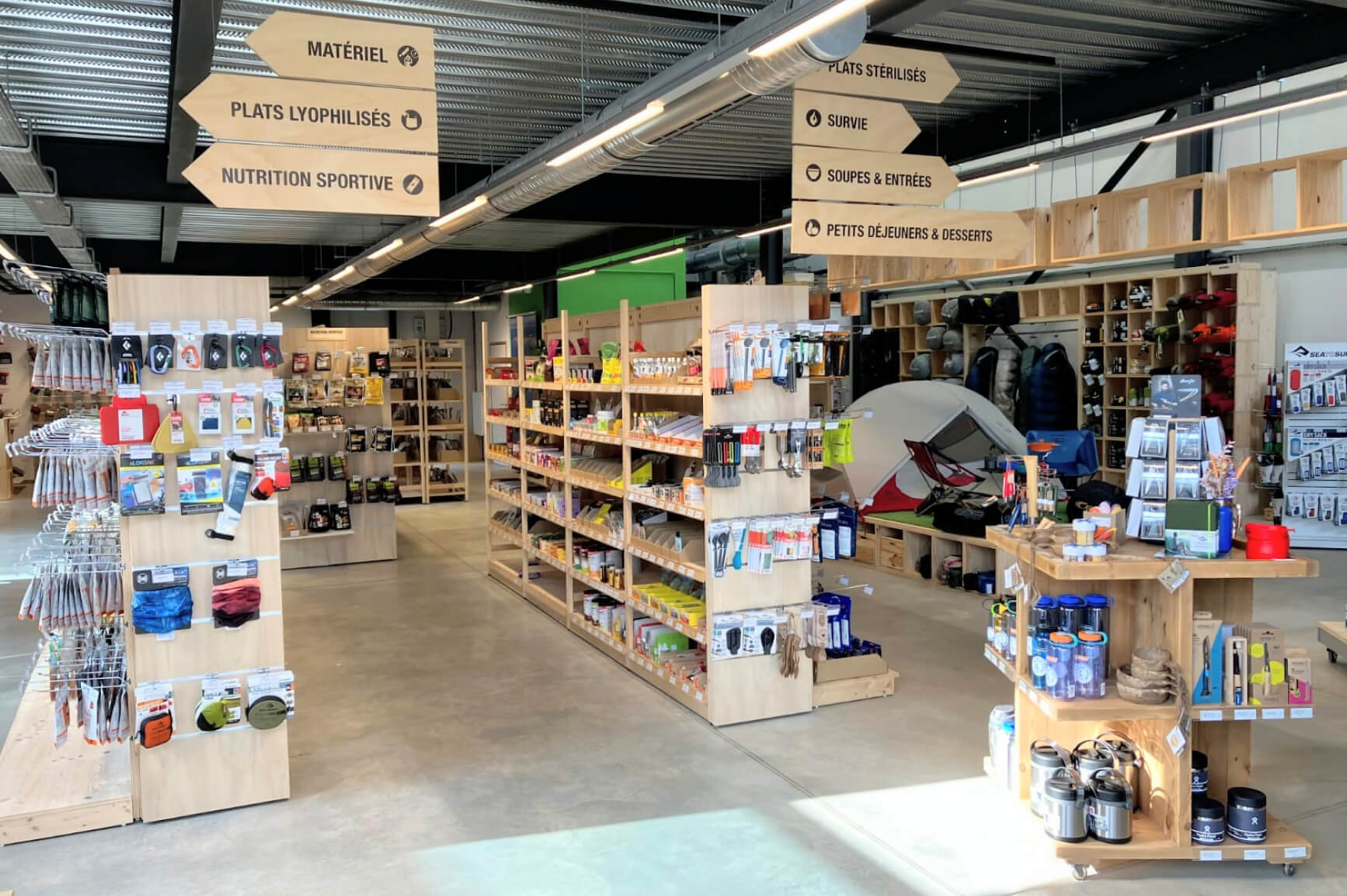 Explora nuestro espacio de 300 m2 dedicado a tus aventuras: senderismo, navegación, trail, vivac, bikepacking, bushcraft...