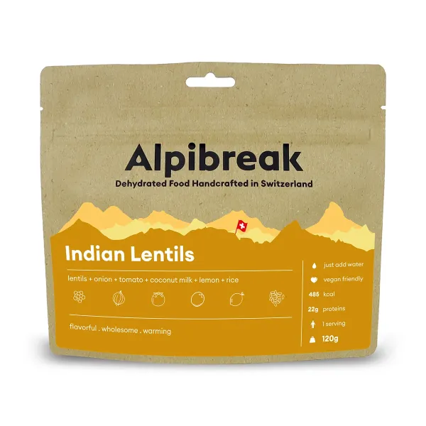 Las Lentejas indias están diseñadas especialmente para comidas calientes y reconfortantes en plena naturaleza. Este plato vegetariano completo combina lentejas rojas, arroz, leche de coco y especias aromáticas en una receta nutritiva y energética. Envasado en una bolsa ligera y resellable, constituye una solución ideal para senderismo, trekking o cualquier actividad outdoor donde la autonomía es prioritaria.