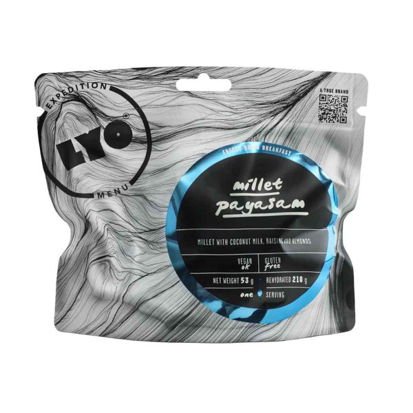 Compacto y fácil de preparar, este payasam de mijo encaja perfectamente en cualquier mochila para acompañar todo tipo de actividades outdoor. Permite disfrutar de un momento delicioso estés donde estés.